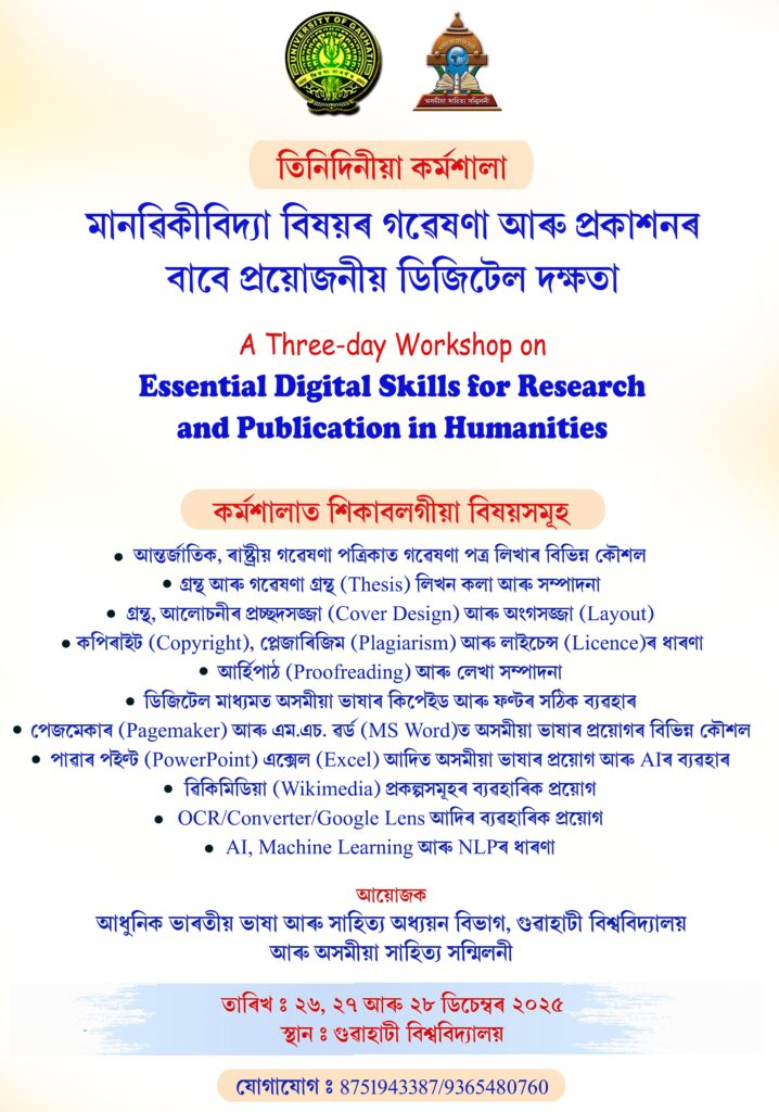 #GU #AssameseWorkshop #DigitalSkills #ResearchAndPublication #Humanities #AssameseLanguage #Wikimedia #AI #AcademicWriting #Proofreading #CoverDesign #Typography #GauhatiUniversity #AsomiyaSahityaSammilani